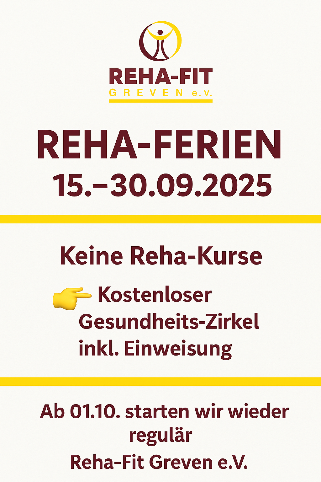 in der Zeit vom 15. September bis einschließlich 30. September 2025 finden keine Reha-Kurse statt.